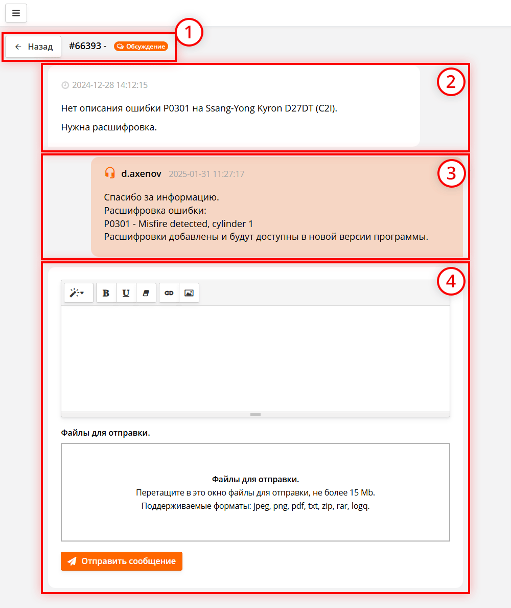 Появится окно оформления запроса в техподдержку, в котором можно: