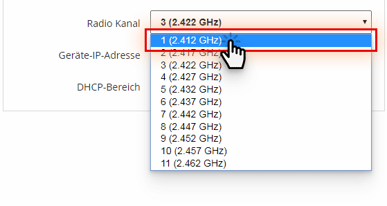 Häufiges Problem — der Adapter verwendet das WLAN Netzt von dem selben Kanal, der von anderen WLAN Geräten in der Nähe verwendet wird. Universäle Lösung: Funkkanal des Gerätes ändern (in meisten Fällen die Benutzer lassen den Wert "Auto", der als Standard eingestellt wird).