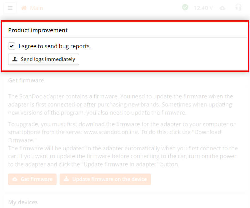 After purchasing a new brand from a dealer, you need to update the firmware on the device. If several scanners are attached to your account, then the firmware is downloaded for all your adapters, although new modules may not be open on all scanners.